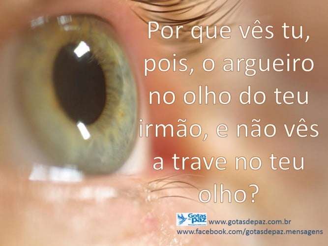 Por que vês tu, pois, o argueiro no olho do teu irmão, e não vês a trave no teu olho? Gotas de Paz