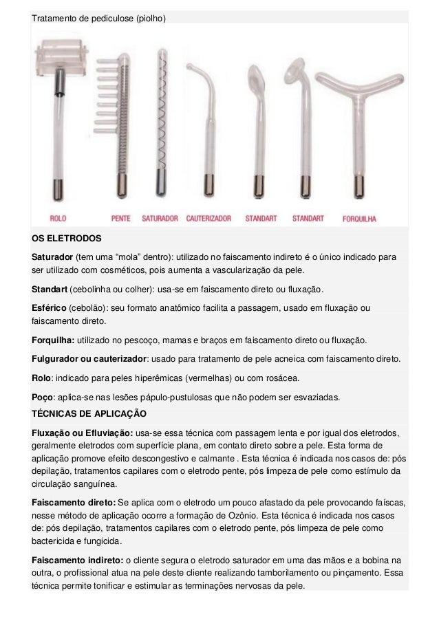O que é alta frequência seu objetivo terapêutico e contraindicações? O estudo evidenciou que o aparelho de alta frequência é uma técnica não invasiva segura e eficaz para tratar acne grau 1 e 2, fazer oxigenação facial que assim melhora o tônus da pele, aplicado sobre foliculite em barbas e em pelos encravados no pós depilatório,também usado em tratamentos de dermatite capilar e.