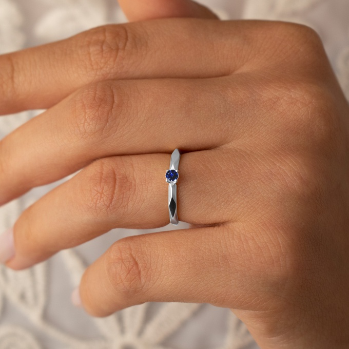 Anel de Namoro em Prata esterlina 925 Solitário com Safira Scarlet Rosê & Co.
