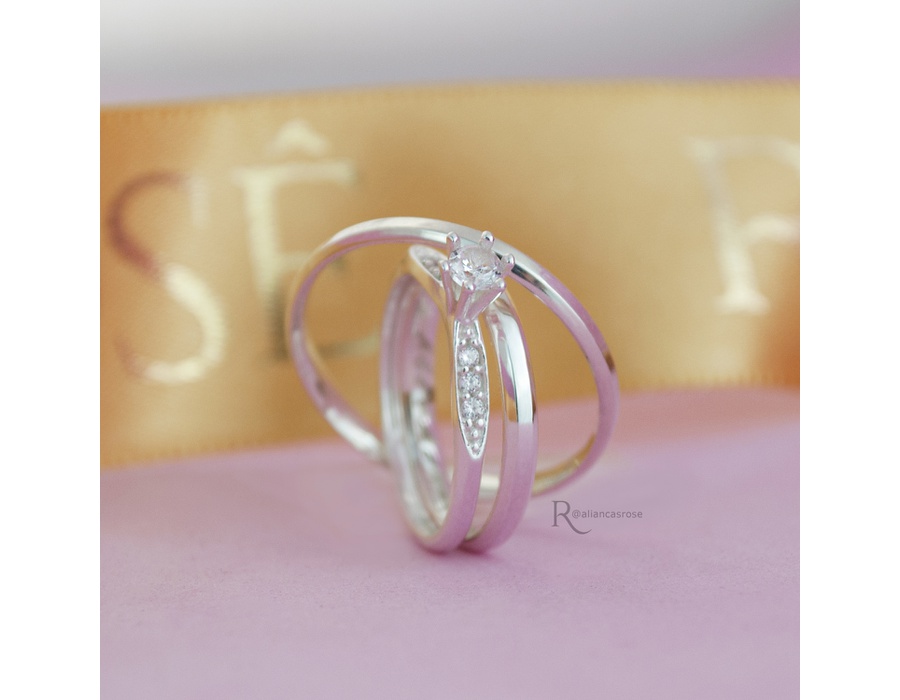 Aliança de Namoro Prata Esterlina 925 3mm modelo Donzela e Anel solitário Lux Rosê Jewelry