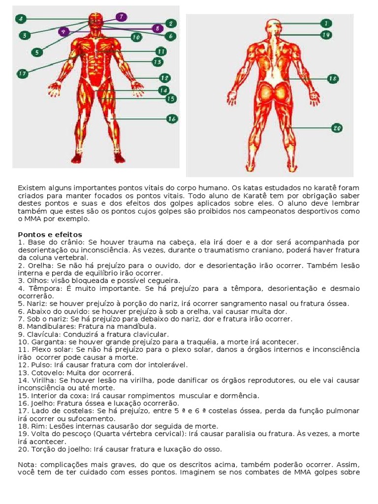 Sebenta do Karate PONTOS VITAIS DO CORPO HUMANO ARTES MARCIAIS